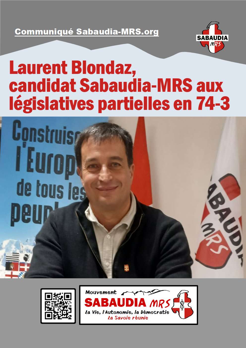 Laurent Blondaz, président de Sabaudia-MRS, sera candidat aux élections législatives partielles dans la circonscription 74-3, à la suite de la démission de Christelle Petex. Sabaudia – Mouvement Région Savoie est engagé pour une décentralisation réelle, ouvrant la voie à une autonomie salutaire, adaptée à nos spécificités montagnardes et frontalières. Il est soutenu par la fédération Régions … Lire la suite